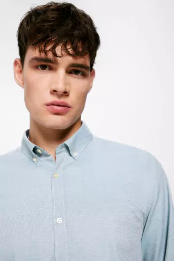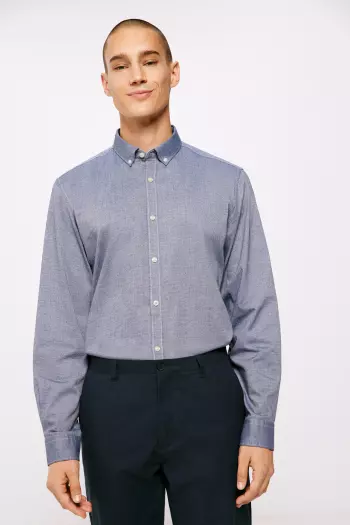 Сорочка крою Custom fit з довгими рукавами із бавовняної тканини «доббі». З коміром на гудзику. Колекція RECONSIDER.